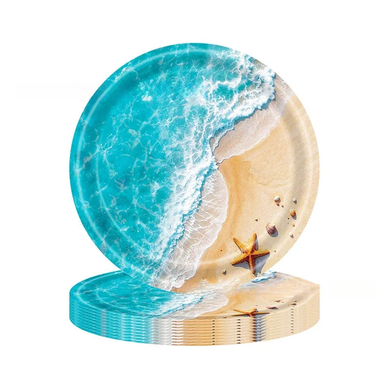 Faites souffler une brise estivale sur vos tables avec ces magnifiques assiettes jetables inspirées du bord de mer. Idéales pour un anniversaire, un pique-nique ou une fête en plein air, elles mêlent élégance et praticité. Leur design évoquant les vagues et le sable donne un air de vacances à chaque bouchée. En plus, elles sont résistantes et jetables. Un vrai gain de temps pour profiter de vos invités !