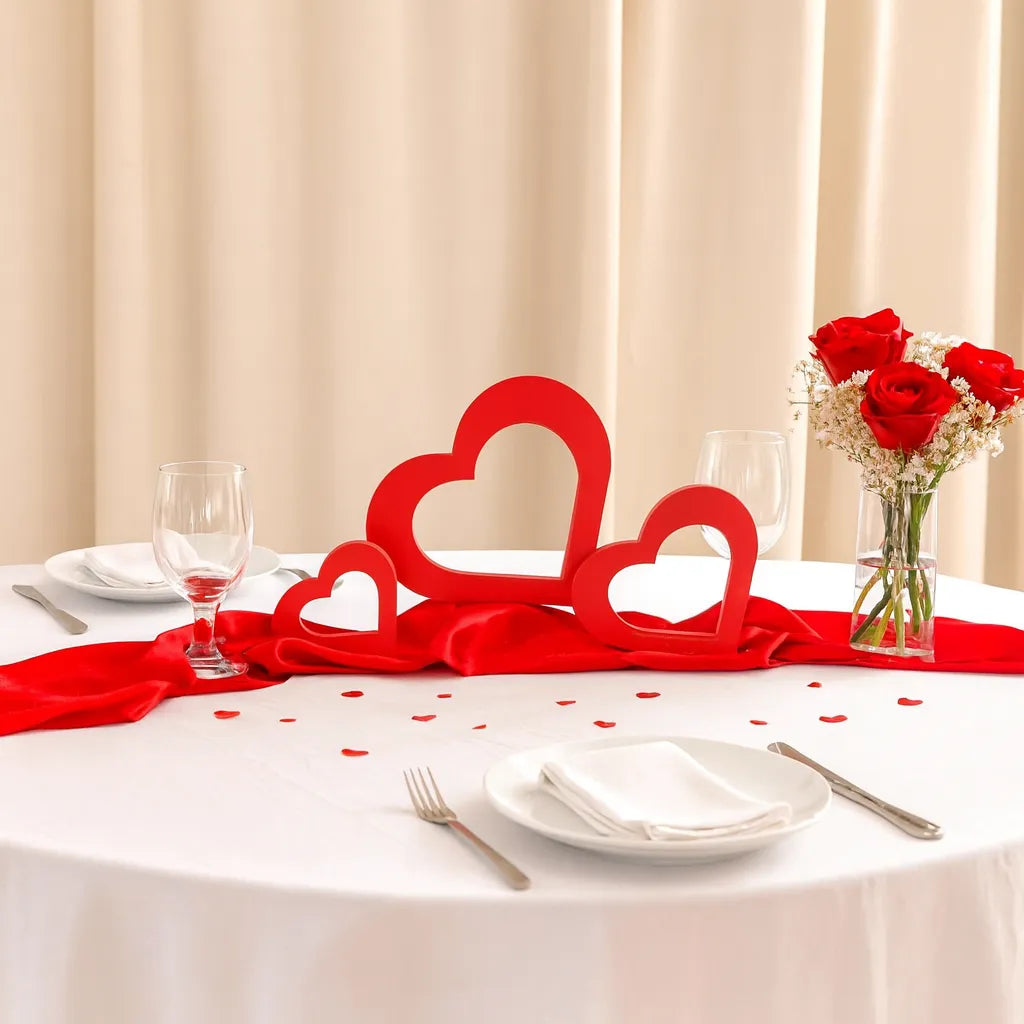 Ce centre de table triple cœur séduit par un design moderne et romantique, composé de trois cœurs élégamment alignés pour créer un ensemble visuel équilibré. La forme fluide de chaque cœur apporte douceur et dynamisme, tandis que la couleur vive attire immédiatement le regard. Cette pièce décorative s’intègre parfaitement dans une ambiance chaleureuse et festive, transformant votre table en un espace expressif et plein de charme.