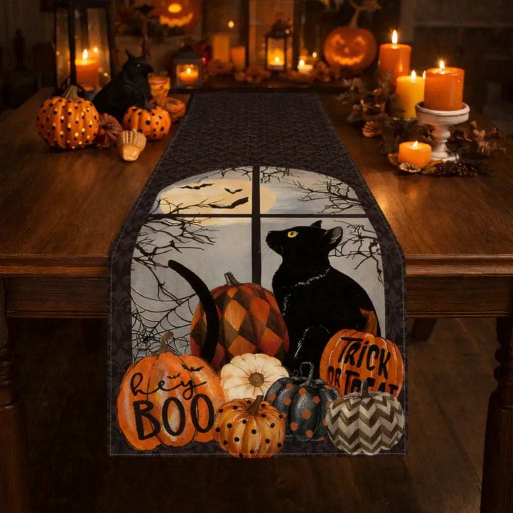 - Apportez une touche naturelle et élégante à votre table d’halloween avec ce chemin de table chat en lin, idéal pour une décoration chaleureuse et pleine de caractère.