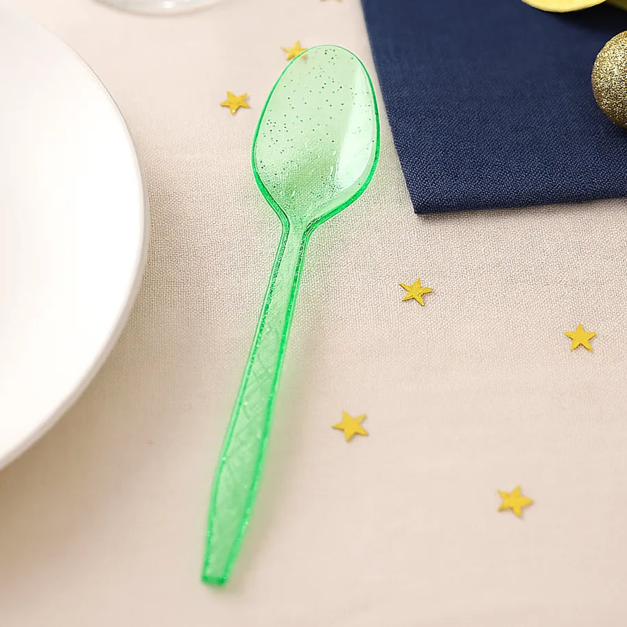 Cuillères Jetables Vertes Pailletées — Élégance festive et praticité assurée