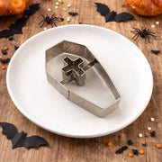 Un cercueil en inox au design élégant pour des biscuits Halloween au style affirmé
