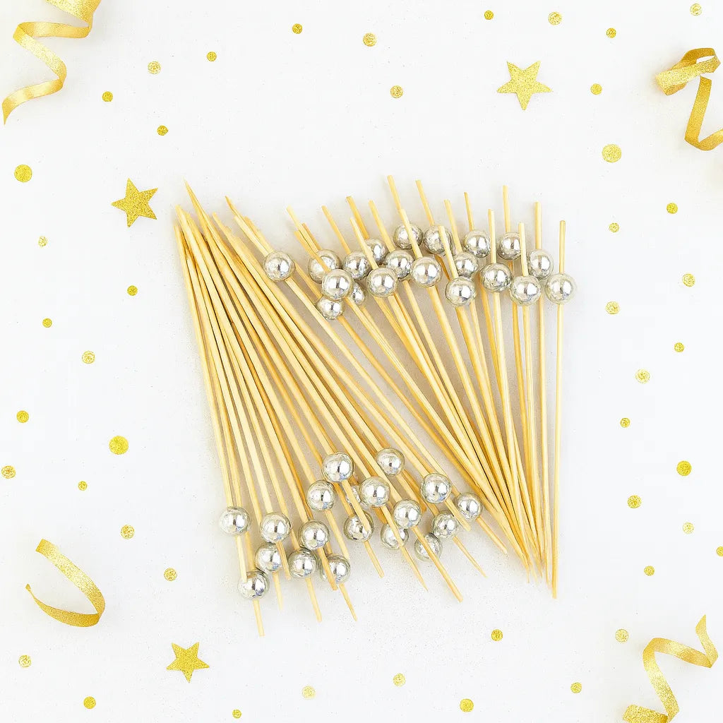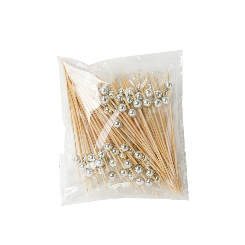 Ces pics perle argenté sont conçus en bambou de qualité avec une finition brillante qui évoque le luxe. Leur design sobre mais distingué s’accorde avec les thèmes classiques ou contemporains. Idéals pour les buffets, cocktails ou plateaux de fromages, ils allient fonctionnalité et esthétique sans effort.