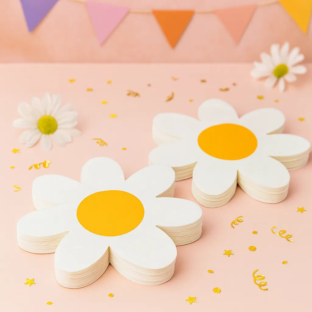 - Cette serviette en papier au motif marguerite blanche incarne la délicatesse et la simplicité.