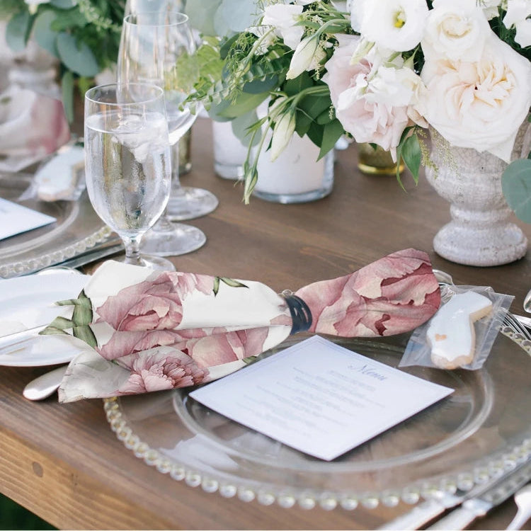 Sublimez votre table de Saint-Valentin avec ces serviettes fleuries élégantes, parfaites pour créer une ambiance romantique et raffinée.