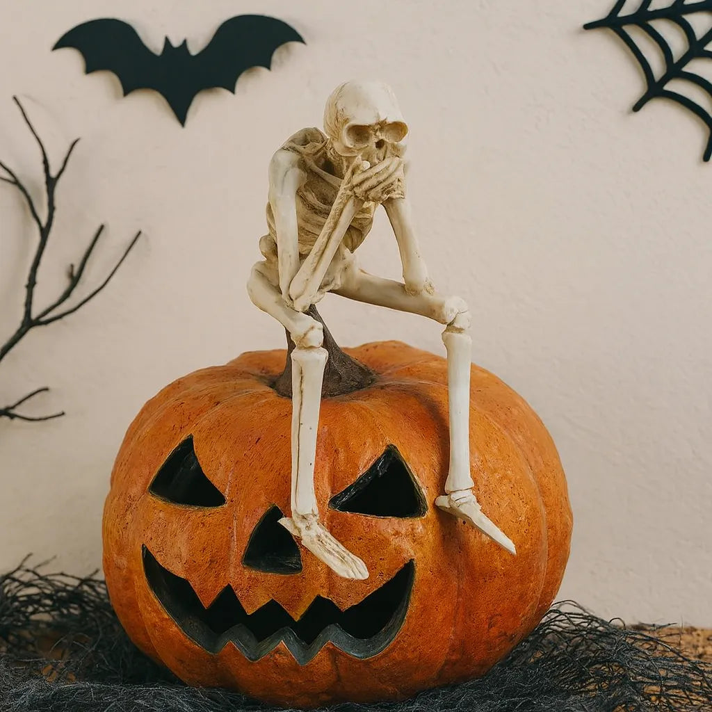 Ce squelette décoratif se distingue par ses finitions précises, révélant des détails soigneusement sculptés qui renforcent son réalisme et son charme. Sa posture réfléchie apporte une dimension originale, idéale pour une décoration atypique. Conçu dans un matériau durable et léger, il conserve sa stabilité et son élégance au fil du temps. Sa qualité de fabrication garantit une utilisation longue durée, permettant d’intégrer facilement cette pièce unique dans diverses ambiances décoratives.
